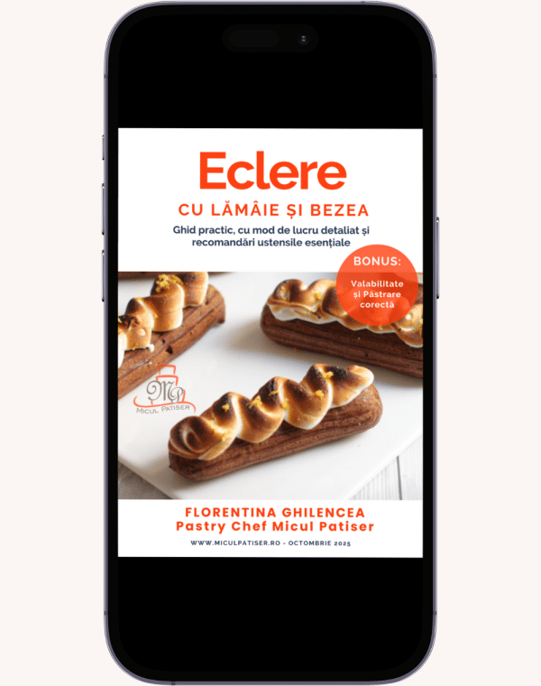 Am gândit eBook-ul „Eclere cu Lămâie și Bezea” ca un ghid practic, cu mod de lucru detaliat, rețete și trucuri din experiența mea.